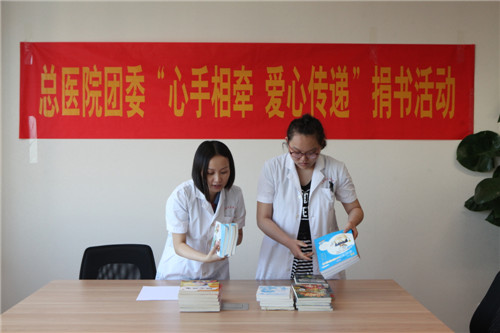 六一(yi)兒童節(jie)前(qian)夕,總醫(yī)院團(tuán)委(wei)特以(yi)“心手相牽 愛心傳(chuan)遞”活動(dòng)爲(wei)契機(jī),向全院員(yuan)工(gong)髮(fa)出倡議,希望大(da)傢(jia)能(néng)奉獻出健康向上、知識性強的(de)書籍,幫助九甲中(zhong)心小(xiǎo)學(xué)四年(nian)級二班建(jian)立“讀書角”,使同學(xué)們能(néng)夠與更多(duo)喜愛的(de)書籍相伴,能(néng)夠與我(wo)們同享多(duo)讀書、讀好書的(de)快樂。