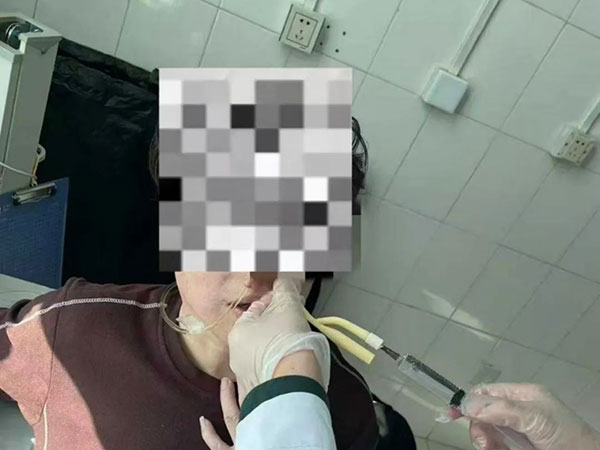 治療前(qian):患者髮(fa)病後(hou)一(yi)直鼻飼進(jin)食,沒有(yǒu)經(jing)口任何食物(wù),口水不能(néng)下咽,頻繁吐唾液,飲水嗆咳。